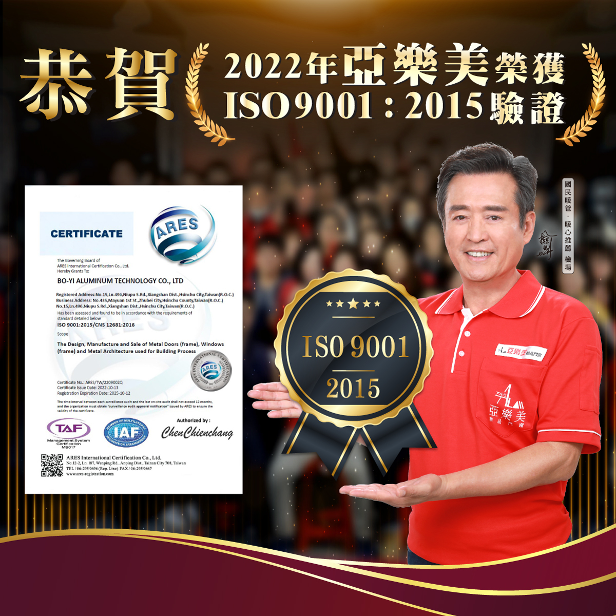 🎊通過ISO9001:2015國際品質管理系統驗證🎊