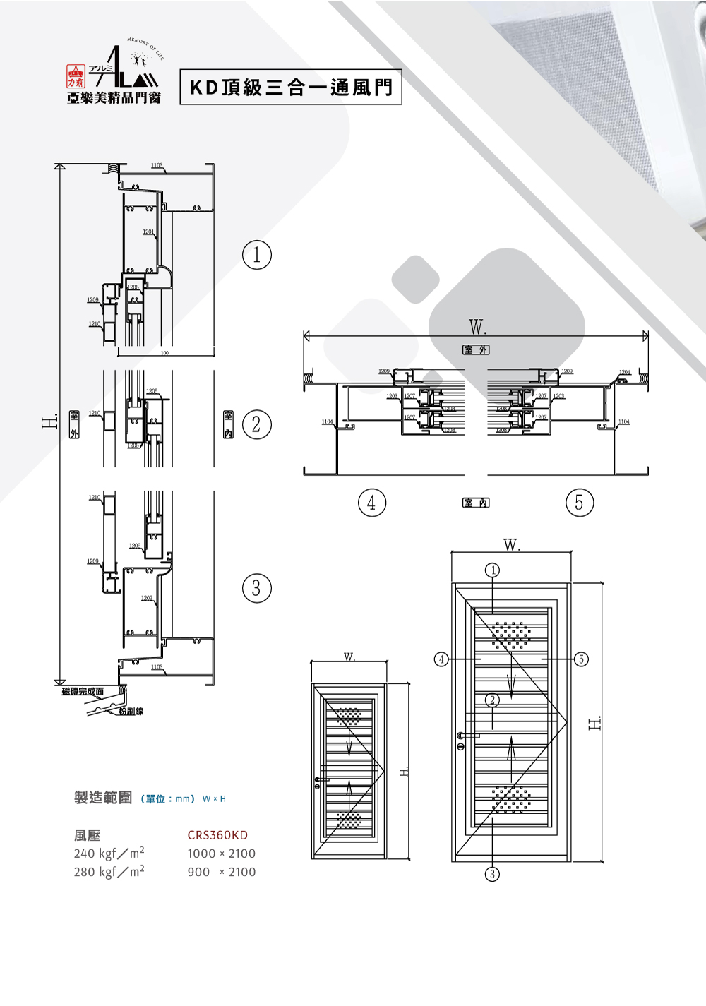 ※依照CNS測試規範,以廠內檢驗為標準抗風壓 160kgf/m2