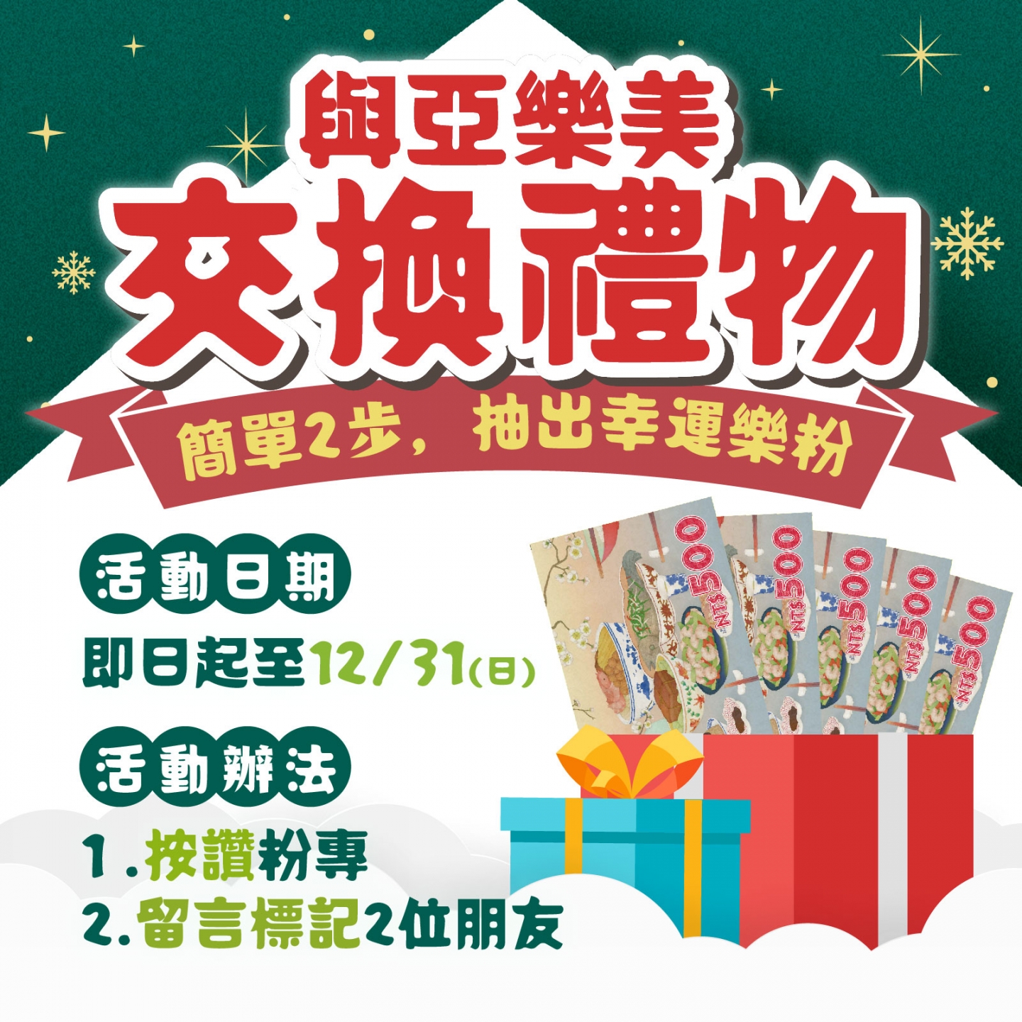 🎄活動時間:即日起至12/31(日) 23:59止