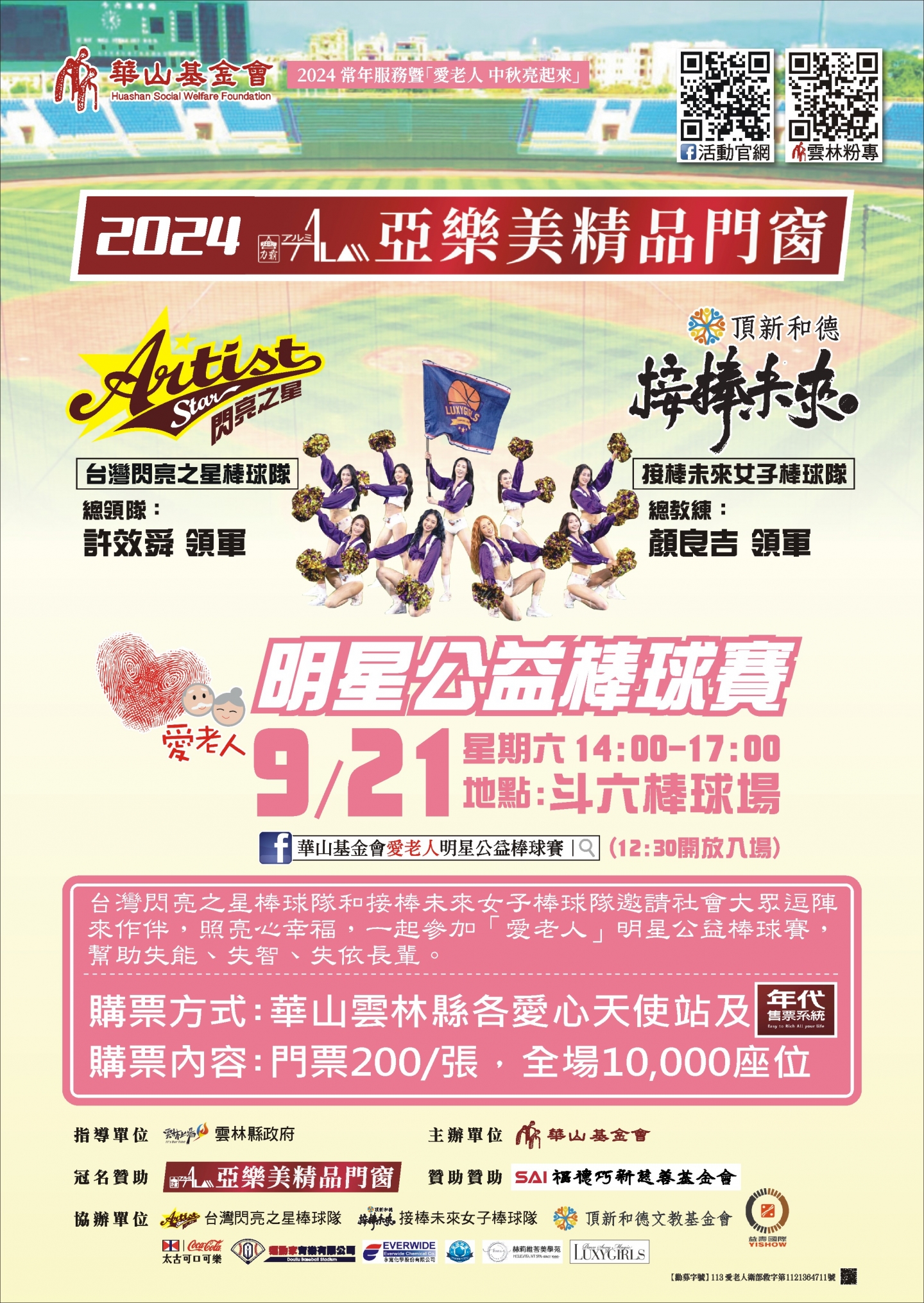 📢2024亞樂美-愛老人明星公益棒球賽📢