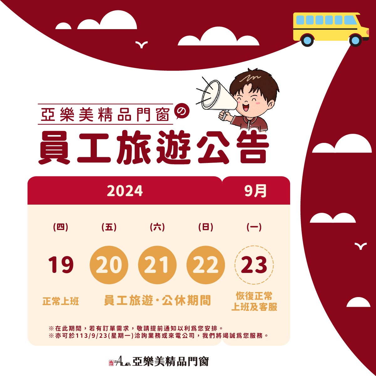 「9/20(五)-9/22(日)亞樂美全公司公休3日!」